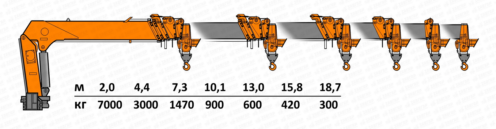| Вылет стрелы, м | 18.7 |